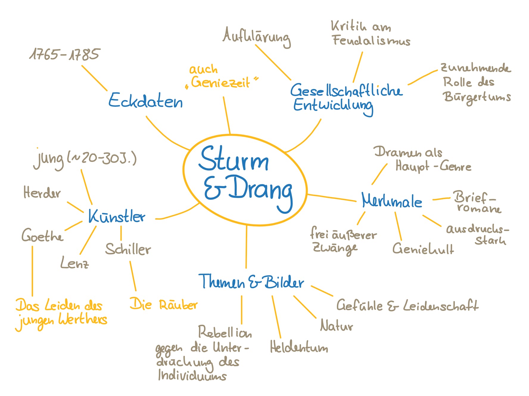 Eine Mindmap zur Epoche „Sturm und Drang“ könnte so aussehen: